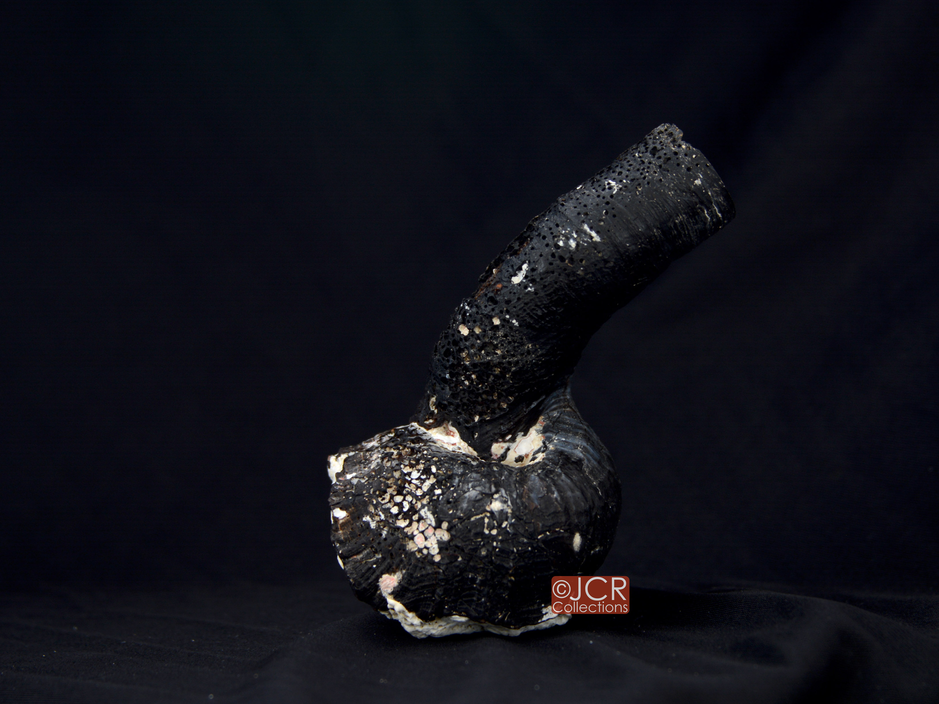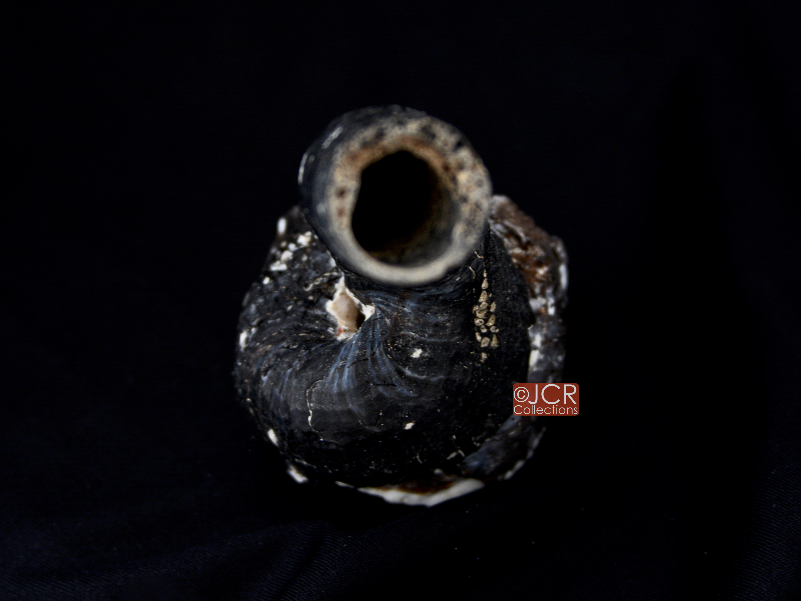 黑蛇螺殼重而硬,固著於岩石上生長,體型呈不規則盤繞。殼口圓形。殼表表面像染了黑色的圓桶形泡沫塑膠。